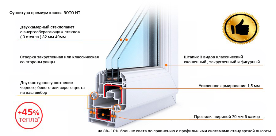 - 2х-камерный стеклопакет (3 стекла) с энергосберегающим стеклом